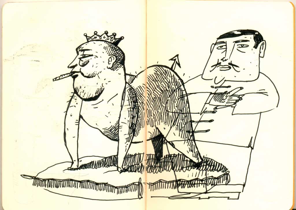 “Worried about his safety, the King bought himself the most handsome, the bravest, kindest-child-loving guard dog ever. The King really loved his dog, he took it anywhere he went. One day, to his surprise, he found his dog covered in blood and the palace was shocked in terror for they found a baby was dead, savagely attacked by a beast. The King was very confused but due to the pressures from the royalties, he killed his beloved dog with his own hand. Yet he was even more confused when they found a body of a wolf in the tower, covered in blood. Driven by guilt and despair, the King stood on his hand and feet naked. From that moment on, he would only bark and howl. He ate and drank like a dog and all the royal affairs were laid to waste. Three months later a revolution erupted and swept the palace. The King was dragged and executed publicly in the plaza. His soul flew here and there, looking for his beloved dog but it was nowhere to be found. In the complete darkness in the realm of the dead, all he heard was baby crying and wolf growling and barking.”