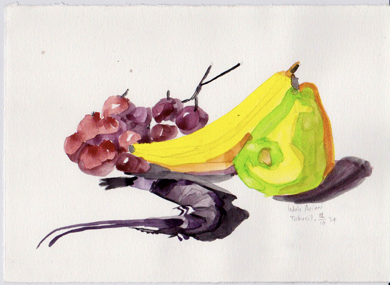 Kawan-kawan yang baik, Kelas Cat Air Tobucil & Klabs akhirnya berakhir dengan mengesankan. Kelas yang semula dijadwalkan berlangsung 4 kali pada kenyataannya menjadi 5 kali pertemuan. Setiap kelas yang semula dijadwalkan hanya berlangsung 2 jam pada kenyataannya berlangsung minimal 3 jam, bahkan bisa sampai 6 jam! Saya mengajar dari jam 9 pagi sampai jam 7-8 malam karena para peserta yang antusias menimba ilmu. Kelas juga berlangsung dengan santai, penuh canda tawa tapi tetap fokus pada karya masing-masing. Saya sebisa mungkin menyesuaikan materi kelas sesuai dengan pendekatan setiap peserta karena bagaimanapun setiap individu adalah unik dan punya kecenderungan sendiri-sendiri. Pendekatan ini sayangnya baru bisa saya katakan setengah berhasil, yang membuatnya kurang berhasil adalah waktu yang kurang panjang. Dengan begitu, saya harap setiap peserta yang termotivasi akan meneruskan berkarya secara mandiri di luar kelas dan tetap membuat kontak dengan saya dan teman-teman yang lain untuk bisa terus belajar. Saya menyediakan waktu untuk melihat dan membahas karya setiap peserta, supaya proses belajar masih bisa terus berjalan walaupun kelas telah berakhir.