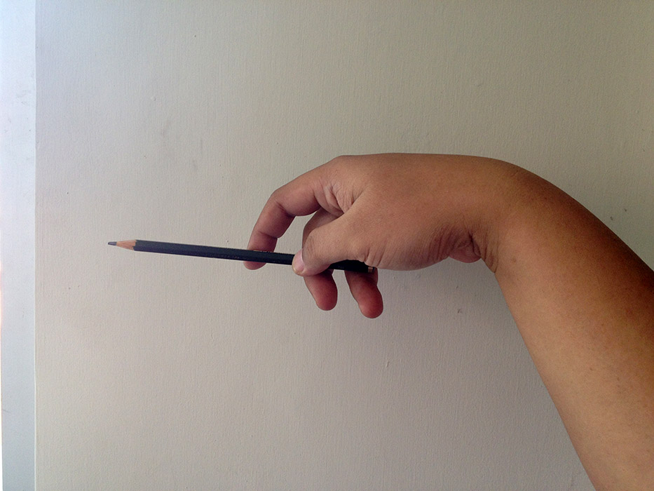 Menggambar tidak seperti itu. Saat menggambar, yang kita gerakkan bukan hanya buku-buku jari tangan kita. Menggambar membutuhkan gerakan pada pergelangan tangan, bahkan bila Anda berhadapan dengan bidang yang besar, gerakan pada siku dan bahu pun diperlukan. Karena itu, sebelum mulai menggambar di kelas nanti, Anda yang jam terbangnya sangat minim dalam menggambar saya sarankan untuk melakukan senam pensil terlebih dahulu. Caranya: