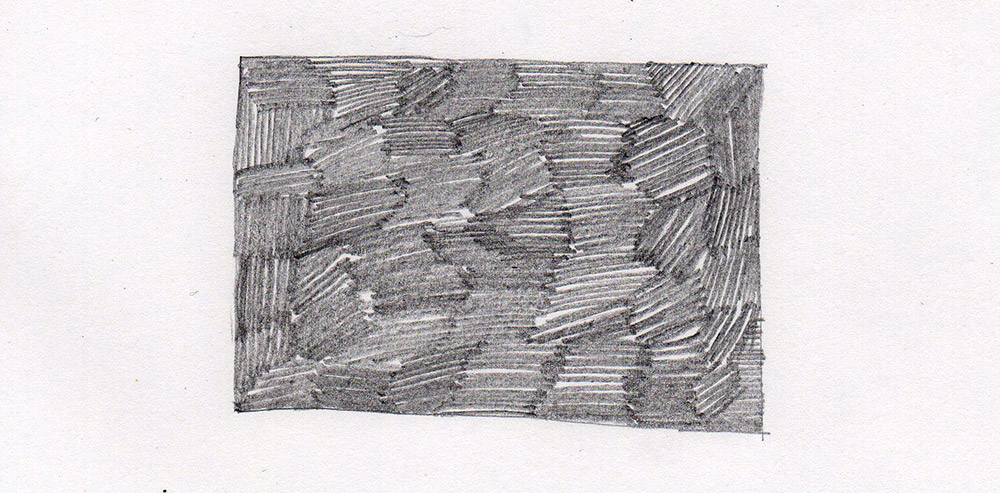 4. Mengarsirlah bolak-balik dengan gerakan yang berpusat pada pergelangan tangan. Tangan berada dalam posisi “terbang”, kira-kira 5 cm di atas permukaan meja dan kertas. Lihat video di bawah ini: