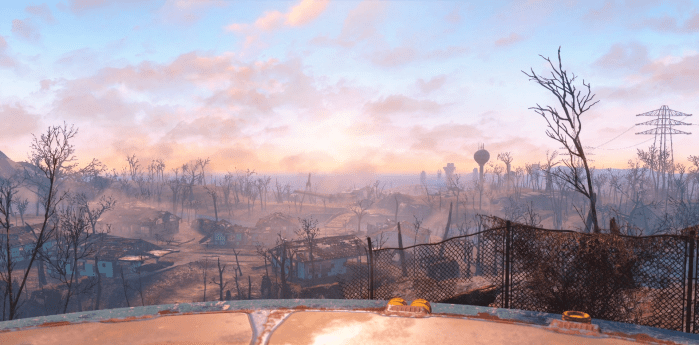 Gambaran Amerika yang hancur dalam “Fallout 4” (Bethesda Game Studios & Escalation Studios, 2015), video game dengan seting post-apocalypse