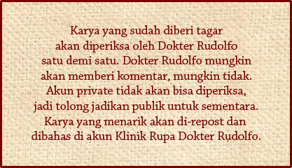 Teman-teman yang baik, saat ini Klinik Rupa Dokter Rudolfo (Klinik) telah berusia empat tahun, dan pada tanggal 21 Oktober kelak usianya akan menginjak lima tahun. Saya ingin mengucapkan terima kasih pada Anda semua yang sudah mengikuti akun Instagram saya, termasuk Anda yang rajin mampir dan membaca tulisan di blog ini, juga Anda yang setia mendengarkan siniar Klinik setiap hari Sabtu pertama di awal bulan. Tanpa Anda semua, Klinik ini akan tanpa makna. Terima kasih, ya. 🙂