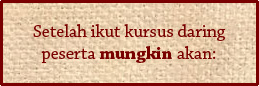 Kedua, biaya. Kursus luring yang saya adakan biasanya berdurasi 3 jam, mencakup dua kali pertemuan. Biasanya Sabtu-Minggu. Per pertemuan, lazim bila saya menetapkan biaya antara Rp.250ribu sampai Rp.350ribu. Karena diadakan dua hari berturut-turut, biaya totalnya Rp.500ribu-700ribu. Harga setinggi ini terhitung cukup mahal. Kursus Privat Program Spartan juga tidak murah. Biayanya Rp.1juta/bulan dan dibayar rutin selama berbulan-bulan, sampai dua tahun bahkan lebih. Karena biayanya cukup mahal, banyak peserta yang sebenarnya berminat untuk belajar jadi tidak bisa ikut. Saya tidak suka kalau semangat belajar harus terhambat masalah biaya.