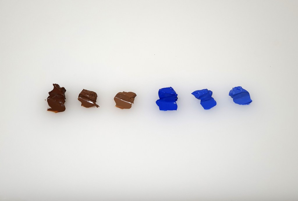 - Titanium white 1 bagian, burnt umber 1 bagian