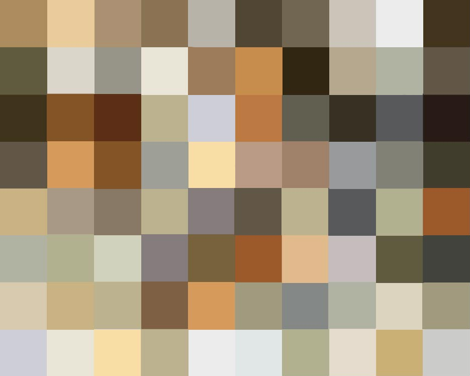 Saat mengaplikasikan warna ke petak-petak di atas kanvas, jangan menyebarkan warna coklat dan biru secara terlalu merata sehingga terjadi pengulangan yang repetitif (coklat lalu biru, lalu coklat, lalu biru), tapi buatlah kelompok-kelompok warna seperti contoh di bawah ini:
