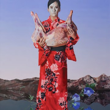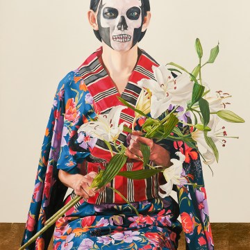 “Vanitas no. 2”, 200 x 150 cm; acrylic, oil, and gold leaf on canvas, 2023.