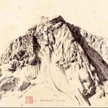 “Figure Series #1”, 84×60 cm, China ink on colored paper, 2003. Exhibition: “Open Studio, Arcus Project”, Moriya, Japan, 2003
