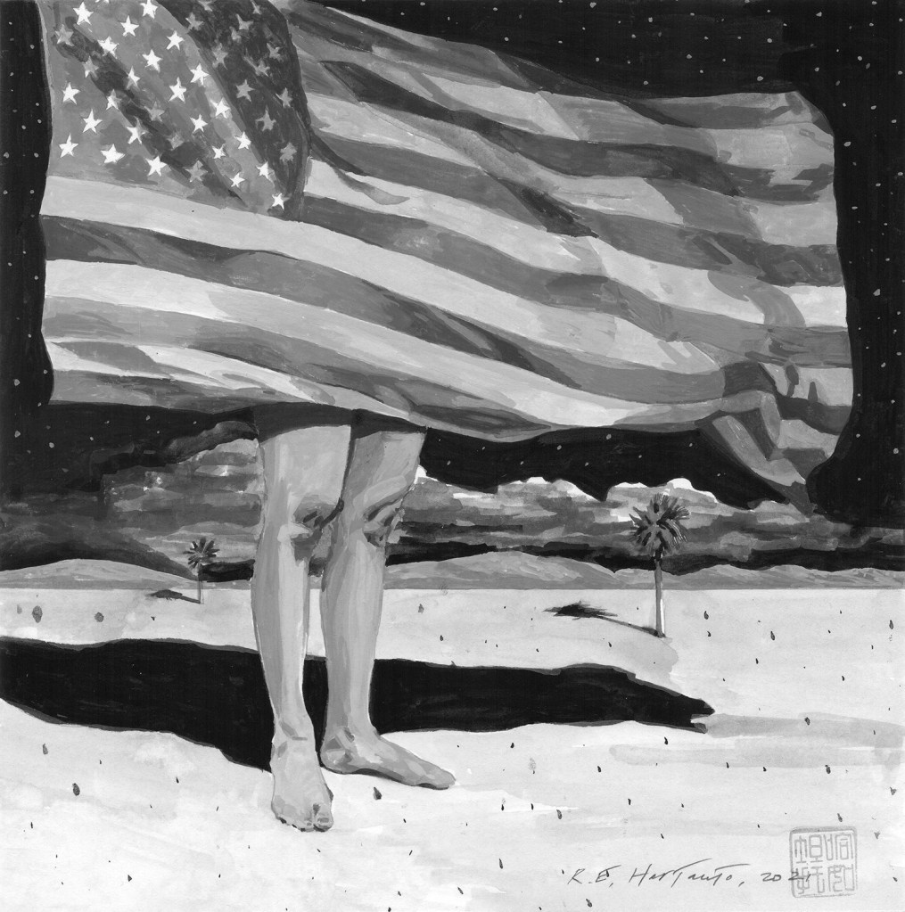 “Star Spangled Banner”, watercolor & gouache, 2021. “Star Spangled Banner”, 19×19 cm, watercolor & gouache. 2021. Illustration for short story “Pataka Bertabur Bintang” by Sori Siregar, Kompas Minggu, May 30, 2021. Related