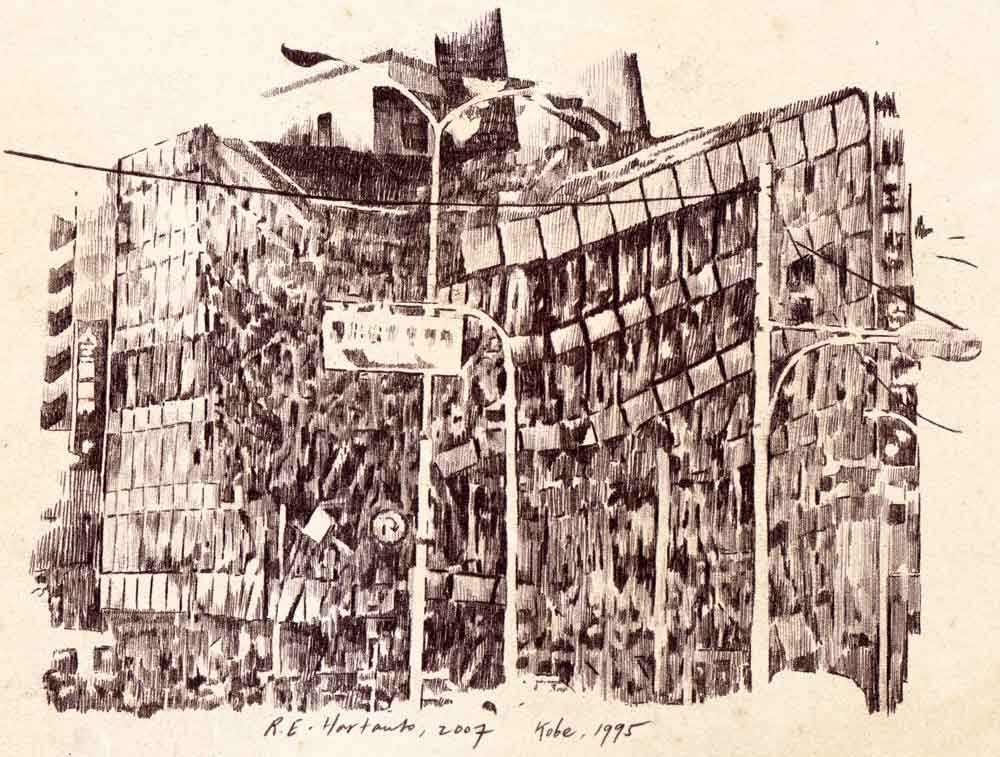 “Kobe, 1995”, 21×29.7 cm, carbon tracing on paper, 2007