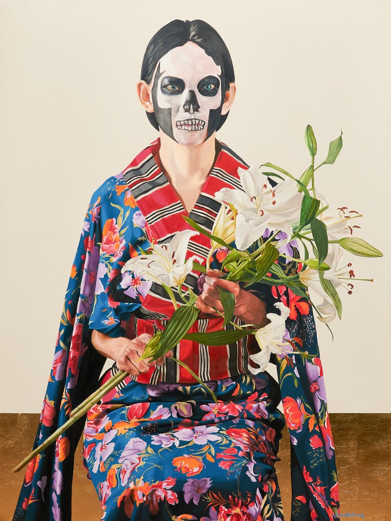 “Vanitas no. 2”, 200 x 150 cm; acrylic, oil, and gold leaf on canvas, 2023.