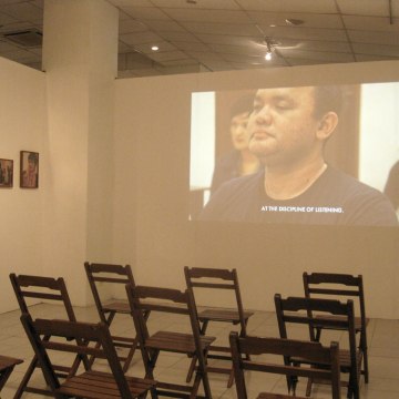 “Noise”, installation, dimension variable with mockumentary video in HD 16’37” and digital prints on canvas. Exhibition: “Yogya Biennale XI: Equator, on Religiosity, Spirituality & Beliefs”, Taman Budaya Yogyakarta, 2011